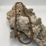 Men’s handmade knitted necklace with natural mineral stones from Tibetan agate (0.6 cm), Lapis washers (0.6 cm) and hematite washers (0.6 cm).