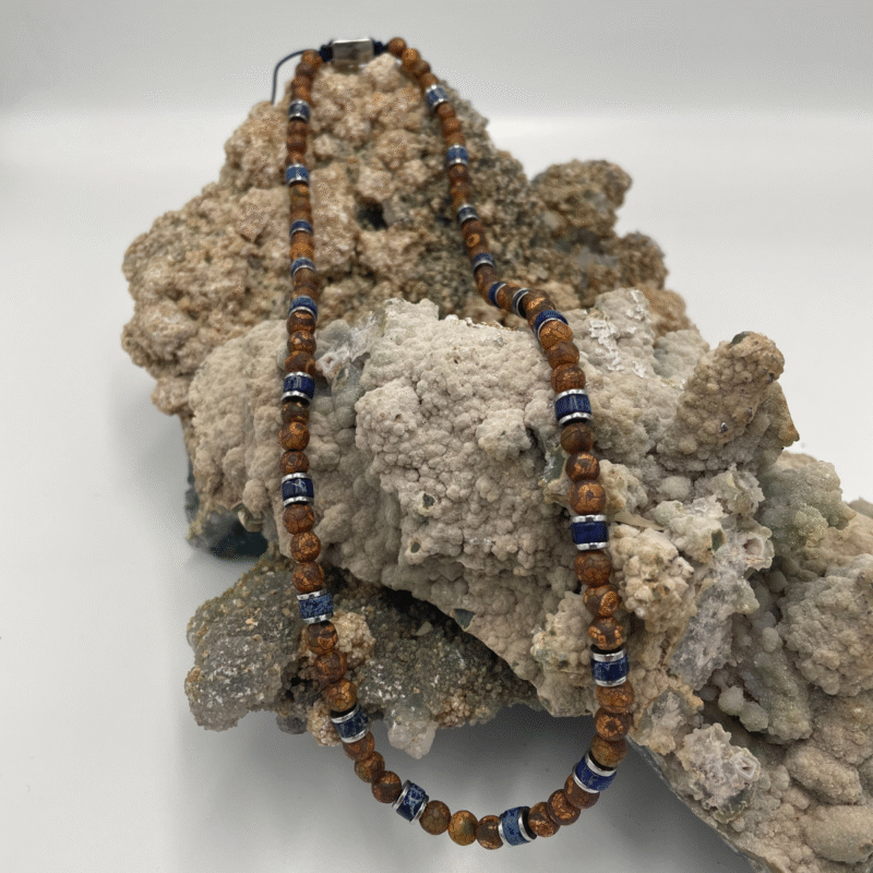 Handmade Necklace for Men with Tibetan Agate & Bleu Lapis