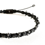 Ανδρικό χειροποίητο πλεκτό μακραμέ βραχιόλι με κύβους αιματίτη (0.4cm) και ροδέλες αιματίτη (0.3cm).